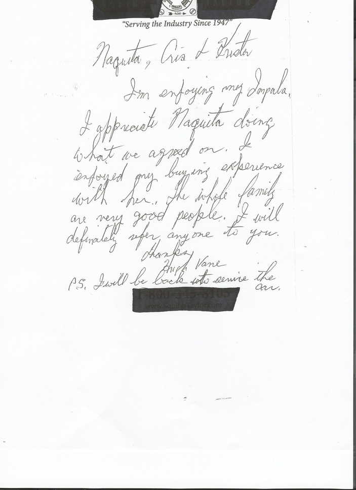 Letter from Jimmy My name is Jimmy B. I don’t know a bunch of big words. But I was treated nice, friendly at Texas Auto Exchange LLC. I would buy another from them. And will send anyone I know to buy there.